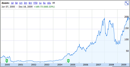 2008年,蘋果的未來再次遭受分析人士的懷疑,擔心消費者負買不起iPhone、iPod或Macintosh等蘋果的產品。不過事實證明這一切的憂慮是多余的,在2000年代的10年里蘋果股價再次增長了660.33%。