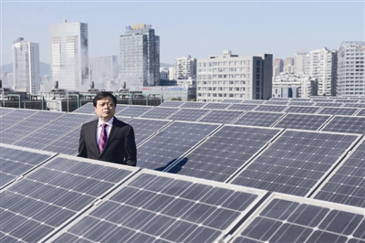 11月29日,南存輝在浙江杭州正泰太陽(yáng)能公司的太陽(yáng)能發(fā)電站。新華社