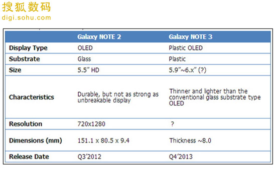 【搜狐數(shù)碼消息】4月23日消息,隨著三星新旗艦Galaxy S4的正式發(fā)布和上市,外界的期待現(xiàn)在都放在了三星下一代Galaxy Note巨屏手機身上。之前有傳聞表示,三星計劃為Note 3加入一塊6英寸巨屏。而日前又有報道稱,這款手機將配備世界首塊塑料OLED屏幕。對比目前使用玻璃面板的設備,塑料面板能讓設備的機身厚度和重量大幅降低。