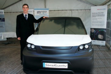 2011年9月,“街頭滑板”在法蘭克福德國國際汽車展上一亮相,便引起不小轟動,還接到了歐洲最大快遞業公司德國郵政的訂單,后者希望能夠定制一款用于郵政運輸的純電動汽車。