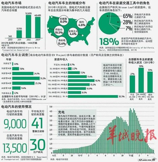 此圖揭示了美國電動汽車的銷量、地域分布、使用情況以及車主的年齡和家庭年收入情況