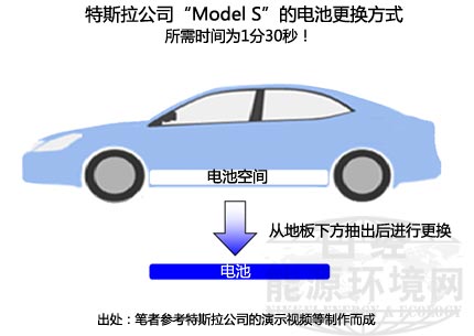既然如此,與其對用盡的電池進行充電,還不如干脆拆下來、更換上已充好電的電池,這樣更快。美國新近入行的電動汽車企業特斯拉汽車公司(Tesla Motors)正在推進這種方法。
