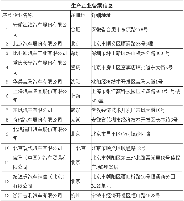 北京市示范應(yīng)用純電動(dòng)小客車生產(chǎn)企業(yè)及產(chǎn)品備案信息