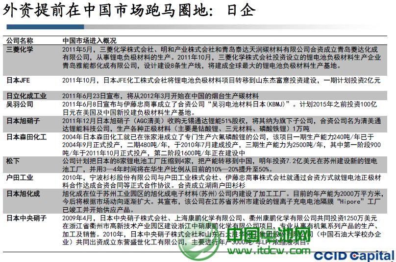 后金融危機時代,日本、韓國、美國、德國、法國等國紛紛開始在正極材料、負極材料、電解液、隔膜、電機電控系統、鋰離子動力電池等領域頻頻出手大資金進攻(如下圖)。這讓中國企業驚呼市場難干、企業虧損、行業寒冬的同時,不得不重新審視外資入局中國電池行業的戰略陰謀。