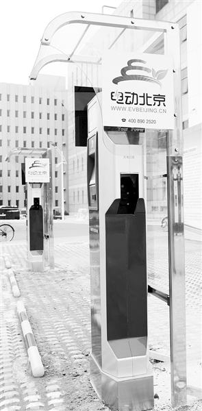 市科委計(jì)劃年底前在北京理工大學(xué)、北京交通大學(xué)、清華大學(xué)三所高校內(nèi)設(shè)立電動(dòng)汽車租賃點(diǎn),共推出100輛電動(dòng)汽車,以期減少交通污染。據(jù)了解,每輛電動(dòng)車充滿一次電能跑約130公里。圖為位于北京理工大學(xué)新信息樓東側(cè)空地設(shè)立的16根電動(dòng)汽車充電樁。