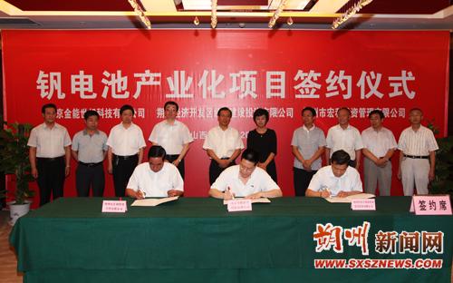 據了解,釩電池產業化項目由北京金能世紀科技有限公司、開發區經濟建設投資有限公司、朔州市宏利投資管理有限公司合作共建,是我市6月14日北京招商推介會的重大成果。項目總投資50億元,全部建成投產后年產值可達150億元,實現利稅60億元。