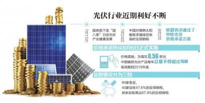 華西都市報:8月2日,歐盟和中國“光伏雙反”和解。泥潭中的中國光伏產(chǎn)業(yè),終于免受滅頂之災。就在本月初,全國最大的民用光伏發(fā)電項目在攀枝花正式并網(wǎng)一個月,呼吁多年的“啟動國內光伏終端市場”,終于邁出了實質性的步驟。