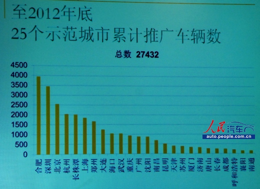 圖1:截至2012年底,25個新能源汽車示范城市累計推廣汽車數量