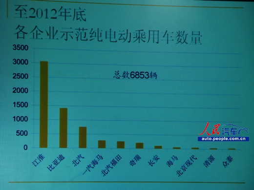 圖2:截至2012年底,主要企業示范純電動乘用車數量