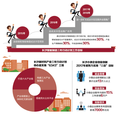 昨日,“中國制造2025長沙在行動”啟動,《長沙智能制造三年(2015-2018年)行動計劃》、《長沙市新材料產業發展三年(2015-2018年)行動計劃》、《關于支持發展創客空間的若干意見》,以及“小微企業創新創業”等系列政策全新發布,開始實施。