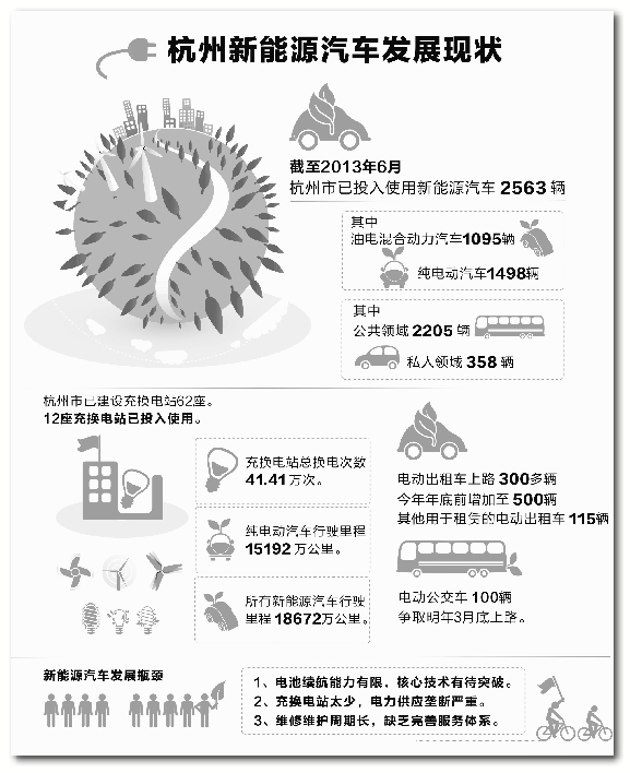 2009年初,杭州喝上了新能源汽車(chē)的“頭口水”,成為我國(guó)13個(gè)新能源汽車(chē)試點(diǎn)推廣城市之一。