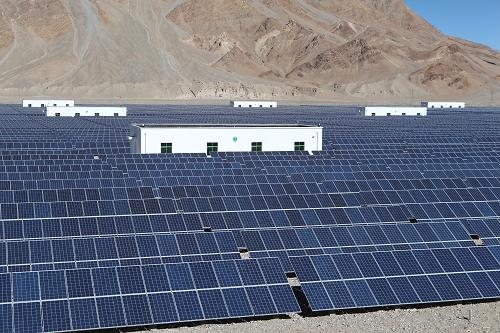 11月26日拍攝的西藏阿里光伏電站。近日,我國海拔最高的10兆瓦級光伏電站——西藏阿里光伏電站,完成二期5兆瓦裝機容量工程,至此電站10兆瓦裝機容量工程全面竣工并進入試運行階段。據了解,阿里光伏電站由國家和中國國電龍源西藏新能源有限公司共同投資建設,設計使用年限25年。電站距離阿里地