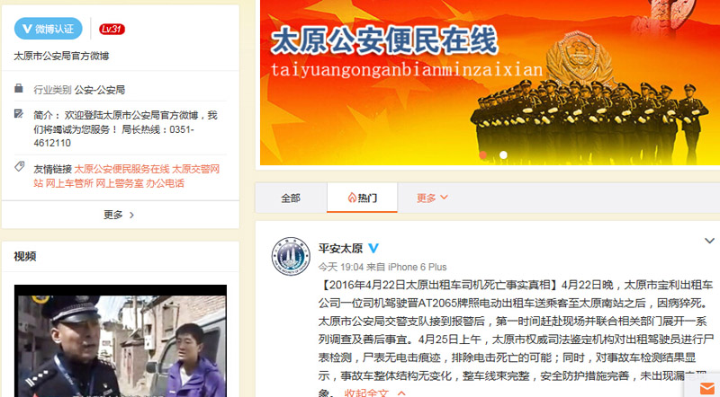 針對網絡上傳播太原電動出租車司機遭電擊死亡一事,太原市公安局25日晚間發布通報稱,經過 ... 查閱全文
