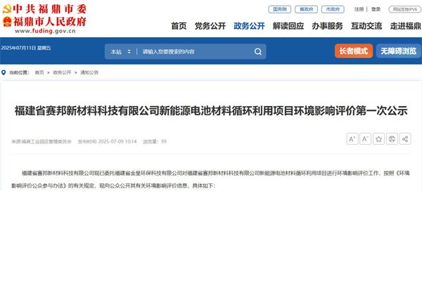 年產5.2萬噸新能源電池系列材料!福建寧德新增電池循環項目