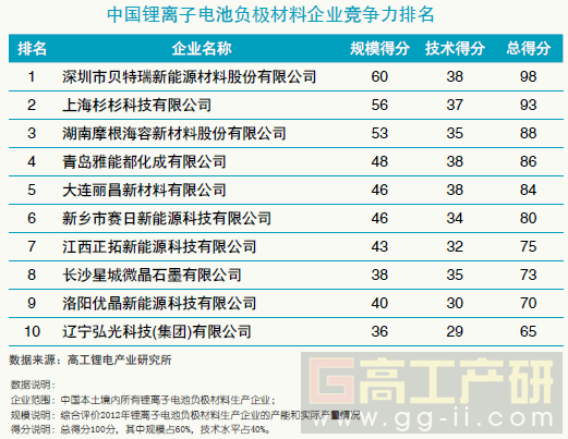 總得分93分,綜合排名第二。1999年成立,杉杉股份(600884. SH)控股,公司2012年鋰來自電池負極材料CMS(中間相炭微球)的銷售量有望達到6500噸。曾經為降低成本轉用人工石墨和天然石墨,此后,因為電池循環放電次數不高,又回到了CMS的技術上。