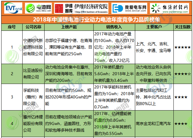 2018年中國鋰電池行業(yè)動力電池年度競爭力品牌榜單