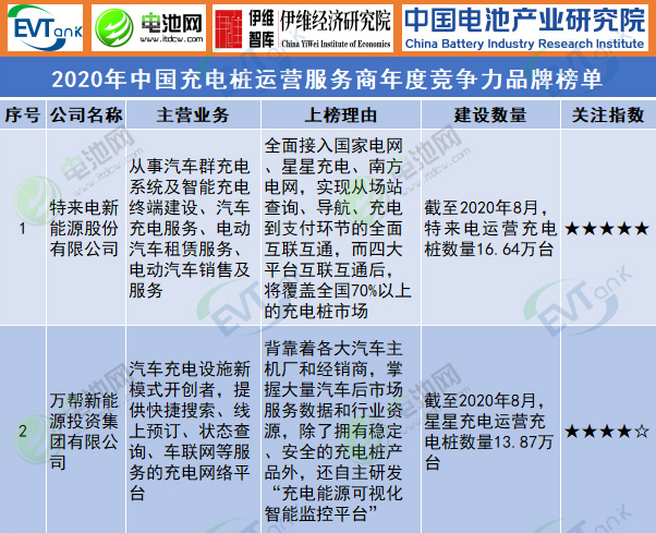 2020年中國充電樁運營服務商年度競爭力品牌榜單