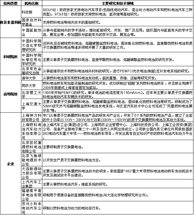 表3中國燃料電池主要研究機構