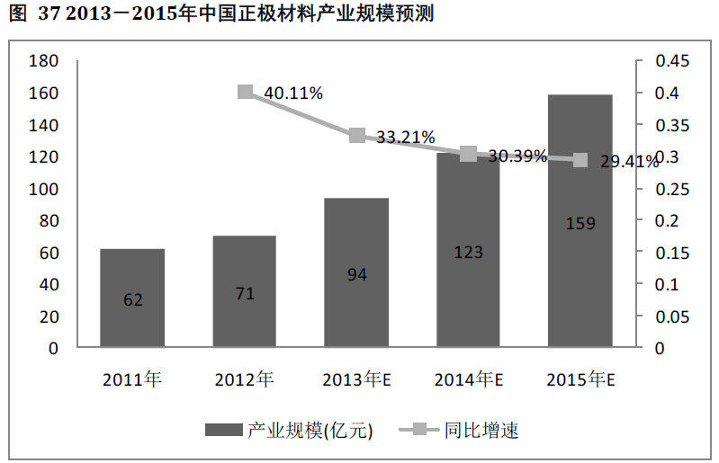 圖 37 2013-2015年中國(guó)正極材料產(chǎn)業(yè)規(guī)模預(yù)測(cè) ................ 51