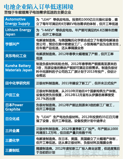 杰士湯淺、三菱商事及三菱汽車出資成立的Lithium Energy Japan也一樣。盡管該公司2012年主要面向i-MiEV建立了每年可滿足約6.8萬輛車需求的體制,但開工率低迷。
