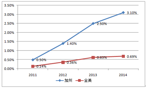 加州、美國(guó)新能源汽車滲透率