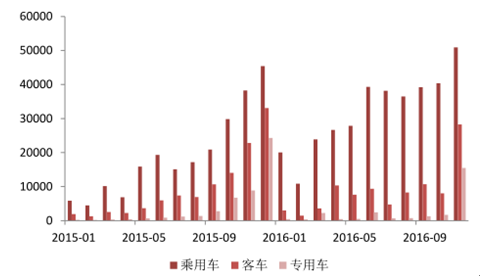 2016 年行業(yè)需求抑制 ,商用車是整頓的重點(diǎn) 。客車、專用車等商用車是騙補(bǔ)的重災(zāi)區(qū),也是 2016 年整頓的重點(diǎn)區(qū)域。在 2016 年出臺(tái)的前 3批新能源車型補(bǔ)貼目錄中,無專用車車型,第 4、5 批目錄 2016 年年底才落地,專用車需求被嚴(yán)重抑制。此外,在最新出臺(tái)的補(bǔ)貼方案中,客車的補(bǔ)貼方式改為按電量補(bǔ)貼、設(shè)置上限,且退坡幅度超過 40%,相比于乘用車下降幅度較大。
