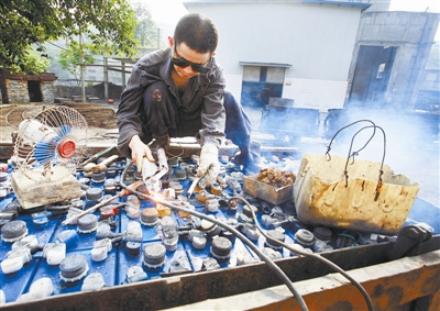 鉛酸電池回收處理企業的狀況同樣不容樂觀。據電池工業協會提供的數據,截止到2011年3月,全國有近3000家廢舊鉛蓄電池回收處理企業,80%以個體戶為主,在每年可回收的近200萬噸鉛酸蓄電池中,這些小冶煉廠又把持著80%的回收份額。此外,近日聯合國公布的一份報告指出,全球大約70%的電子產品最終變成垃圾并流向中國,中國以每年生產超過230萬噸電子垃圾,成為繼美國之后的世界第二大電子垃圾生產國,同時也成為世界最大的電子“垃圾場”。而這些“進口”和自產的大量廢舊電池,包括電動車中的鉛酸電池,也會被送往遍布各地的中小型企業及手工作坊。這些個體戶通過簡單處置以污染環境為代價回收到一些稀貴金屬。