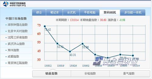 從圖表開頭130812期的72.42的最高點(diǎn)開始,銷量就一直呈現(xiàn)下滑趨勢(shì),這個(gè)時(shí)候各大相機(jī)廠商都準(zhǔn)備蓄力推出年中的拳頭產(chǎn)品,絕大多數(shù)用戶都在持幣 觀望,導(dǎo)致了銷量迅速下滑。在130902期出現(xiàn)了一個(gè)小規(guī)模反彈到了52.26點(diǎn),這個(gè)時(shí)期相機(jī)新品依次公布,部分持幣觀望的用戶開始出資購(gòu)買,導(dǎo)致出 現(xiàn)了銷量的一個(gè)小高峰。高峰過后的銷量依然是下滑,經(jīng)過了前幾期的大幅度撥動(dòng),目前銷量指數(shù)一直平穩(wěn)的在38點(diǎn)左右徘徊。筆者相信到了年底,隨著各大商家 的清貨促銷活動(dòng)的開始,相機(jī)市場(chǎng)的銷量會(huì)再次出現(xiàn)一個(gè)小高峰。