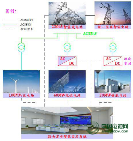 該項(xiàng)目位于河北省張家口市的張北縣和尚義縣境內(nèi),是國家“金太陽”項(xiàng)目重點(diǎn)工程,由國家電網(wǎng)旗下國網(wǎng)新源控股有限公司具體實(shí)施。該項(xiàng)目的投資主體是國家電網(wǎng),科技部和財(cái)政部僅僅提供部分科研項(xiàng)目經(jīng)費(fèi)和金太陽工程補(bǔ)助。這是中國首個(gè)風(fēng)光儲輸示范項(xiàng)目,同時(shí)也是目前世界上規(guī)模最大,集風(fēng)電、光伏發(fā)電、儲能及輸電工程四位一體的可再生能源項(xiàng)目,是國家電網(wǎng)建設(shè)堅(jiān)強(qiáng)智能電網(wǎng)首批重點(diǎn)工程中唯一的電源項(xiàng)目。