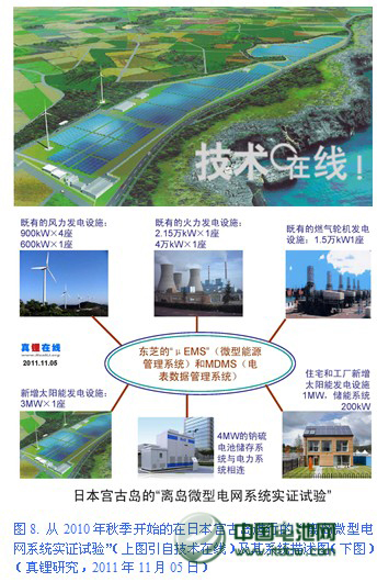 2010年01月18日,東芝對外宣布,接到了日本沖繩電力公司2010年秋季將在宮古島開始的“離島微型電網(wǎng)系統(tǒng)實(shí)證試驗(yàn)”相關(guān)設(shè)備的一攬子訂單。根據(jù)要求,東芝將構(gòu)建以儲能電池平衡功率變動(dòng)劇烈的可再生能源負(fù)荷的新一代電力系統(tǒng)。真鋰研究認(rèn)為,這是探討?yīng)毩⒐╇娤到y(tǒng)的一個(gè)有代表性的嘗試工作,對于中國來說應(yīng)該非常具有借鑒意義。因?yàn)椋袊箨懱柲芎惋L(fēng)能資源豐富的地方,一般都是電網(wǎng)沒有覆蓋到的地方。