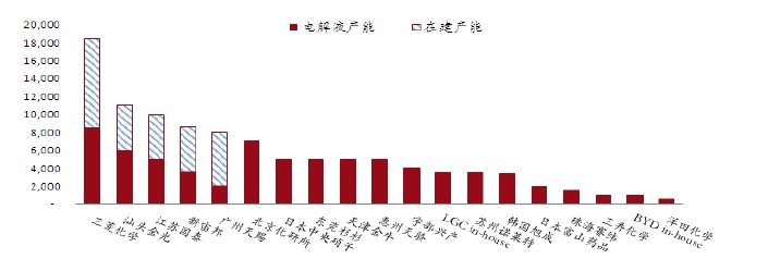 圖表2:國內六氟磷酸鋰擴產計劃統計
