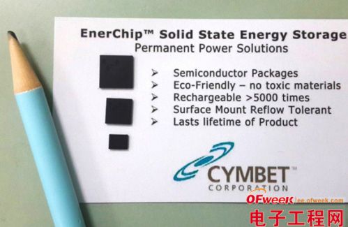 EnerChips可使用表面貼裝技術和回流焊安裝,不需要使用電池座。Cymbet EnerChip電池使用標準半導體集成電路工藝以及獲得專利的構造技術而特別地制成。這些電池可以以裸片或者采用塑料封裝等形式提供,并可與電子設備中的其它集成電路一樣,使用相同的表面貼裝技術(SMT)和回流焊接安裝。EnerChip能夠在小的外形中提供能量存儲。