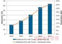 根據(jù)NPD DisplaySearch移動電腦出貨量及預測最新季度研究報告,2013年具備觸控功能筆記本電腦的出貨 ... 查閱全文