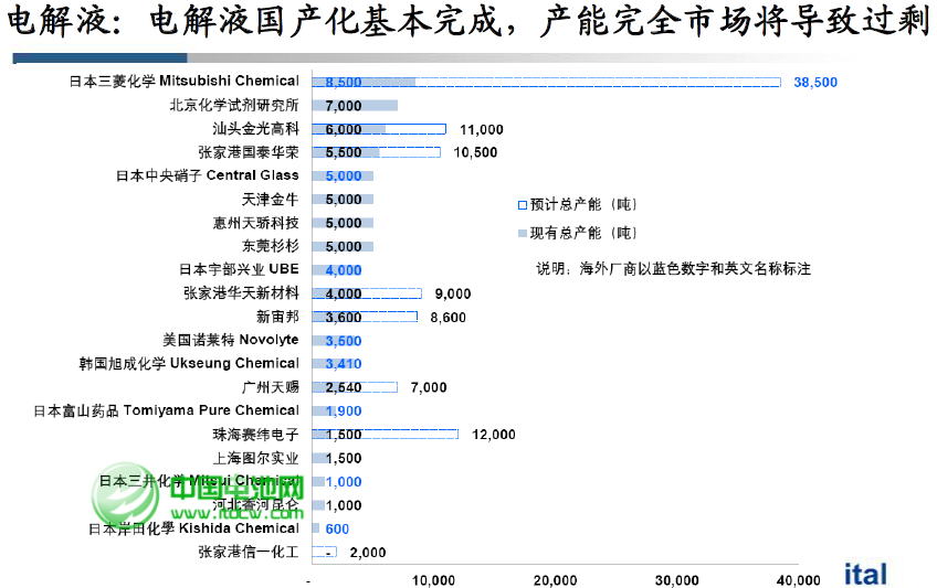 價格來看,目前電解液的平均價格約為7.5萬元/噸,整體市場規模約為45億元左右。