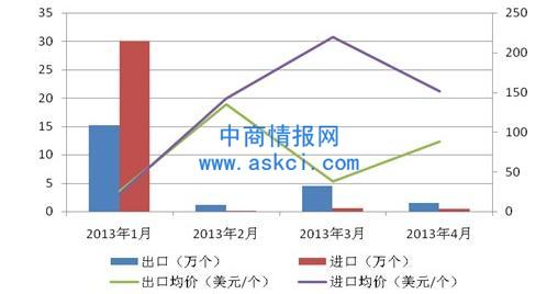 2013年1-4月我國鋰電池進出口月度統(tǒng)計數據
