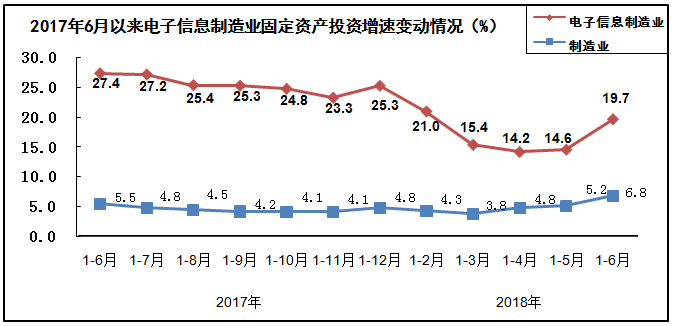 2018年上半年,電子信息制造業(yè)繼續(xù)保持平穩(wěn)增長態(tài)勢,生產(chǎn)和投資增速在工業(yè)各行業(yè)中保持領(lǐng)先水平,產(chǎn)業(yè)運行總體保持穩(wěn)健,為全年產(chǎn)業(yè)持續(xù)健康發(fā)展打下堅實基礎(chǔ)。