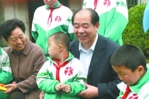 李世江和焦作市福康學(xué)校的孩子們?cè)谝黄?/p>