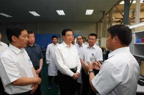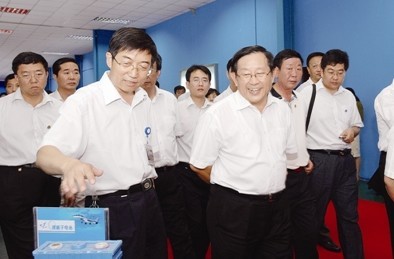王崇嶺向科技部部長萬鋼介紹中航鋰電