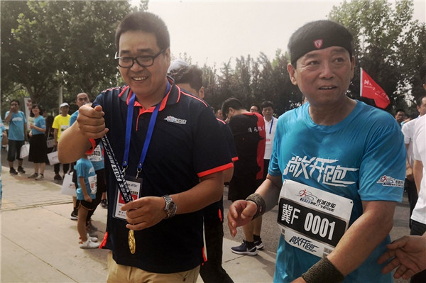 8公里的跑步對魏建軍來說并不輕松,但他堅持跑完并獲得了一塊獎牌 圖/張海天
