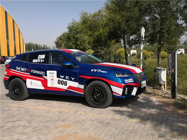 10月2日清晨,筆者按“線索”來到了天鵝湖風景區(qū)附近。其實在10月1日的下午,一輛停靠在天鵝湖風景區(qū)里充電的VV7 PHEV已經(jīng)引起筆者的注意——車身上赫然寫著“魏建軍B+”,很明顯這是一輛“戰(zhàn)車”。以魏建軍的行事風格,不會因為“凹造型”而特意設(shè)計一款比賽用車,既然它在這兒就說明一定有其“用武之地”。