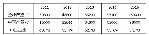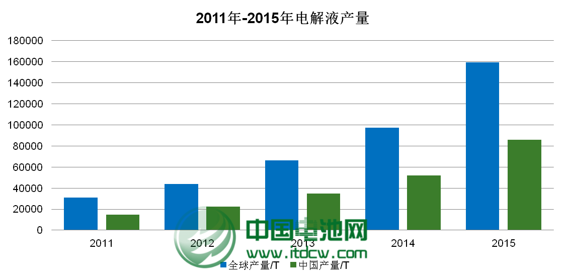 鋰離子電池市場的快速增長直接帶動了電解液材料產(chǎn)業(yè)的發(fā)展,從2003年起逐年增長,增幅大于20%;2012年電解液產(chǎn)量增幅最大,比去年增加51.0%。