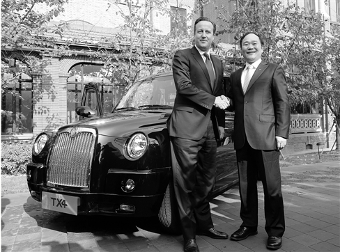 作為東道主,李書福邀請(qǐng)卡梅倫試乘上海出產(chǎn)的倫敦出租車。