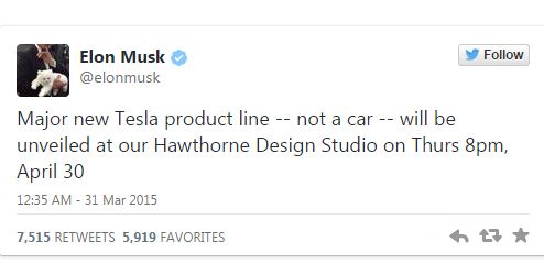 根據特斯拉投資者關系部門副總裁杰弗里 伊萬森發給投資者和分析師的電郵中稱:我們決定先透露一下4月30號將發布的產品,一款家用電池和一款超大效用電池。我們將會說明我們的電池解決方案的優勢以及過往電池不具吸引力的原因。特斯拉發言人克霍比 布魯克林表示,“我們將在下周分享更多信息”。彭博社和Buzzfeed網站確認了郵件的真實性。