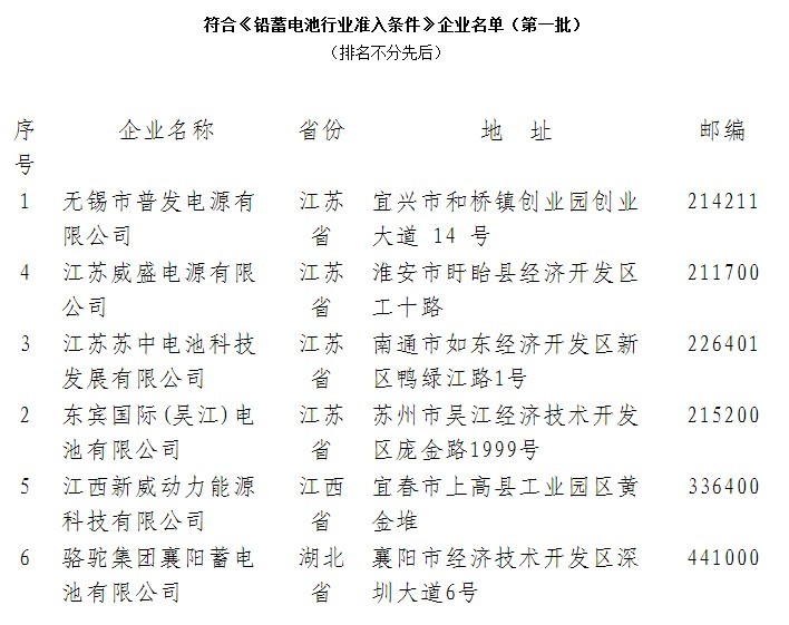 工信部網站9日消息,為推動鉛蓄電池行業可持續發展,依據《鉛蓄電池行業準入條件》,工業和信息化部、環境保護部開展鉛蓄電池企業準入管理。駱駝集團襄陽蓄電池有限公司等6家企業符合《準入條件》。