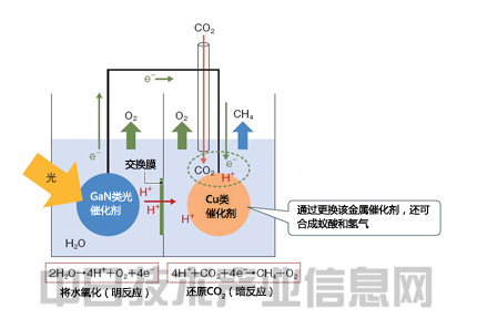 松下開發(fā)出了利用太陽光、水及二氧化碳(CO2)合成甲烷(CH4)的人工光合系統(tǒng)(圖1)。