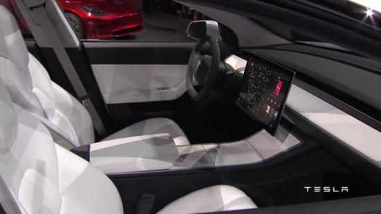 Model 3 的顯示屏為 15 英寸,比 Model S 以及 Model X 的中控屏幕小 2 英寸。