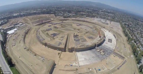 Gopro相機拍下的蘋果(Apple)公司“飛碟”新總部的地基