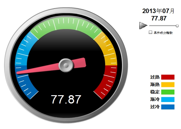 2013年7月中輕電池景氣指數(shù)為77.87,繼續(xù)停留在“過(guò)冷”提示區(qū),較3月的68.56有較大提升。