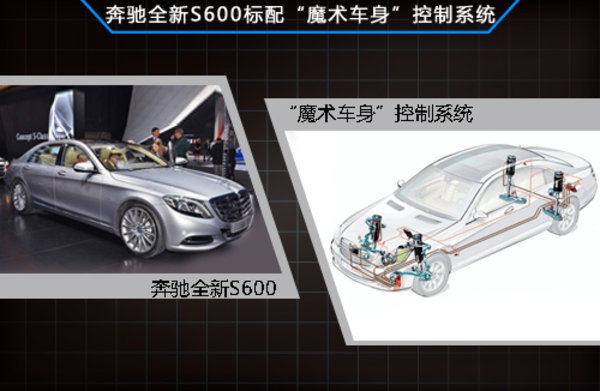 奔馳全新S600車型將標配“魔術車身”控制系統,此外還有駕駛輔助選裝包等?!澳g車身”控制系統由主動式懸架系統、前置攝像頭系統構成,RSS路面掃描系統的攝像頭會自動檢測路面狀況,然后根據需要調節懸架的軟硬程度或者高低程度,以應對各種路面情況。動力上其搭載一款全新的V12雙渦輪增壓引擎,未來也將引入國內銷售。