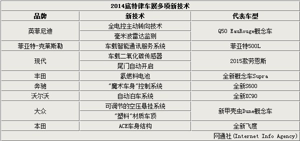 在本屆底特律車展上,有50余款新車在車展首發亮相,這也是汽車廠商們利用電子技術進行比拼的一次展示,眾多車企帶來了最新研發的應用技術,其中包括:英菲尼迪全電控主動轉向技術、沃